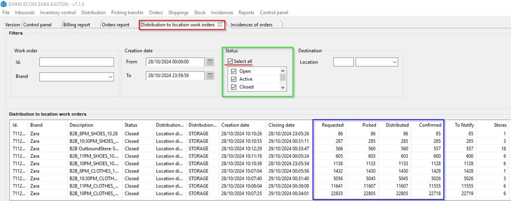 EWMS -> Distribution -> Distribution to Location Work Orders